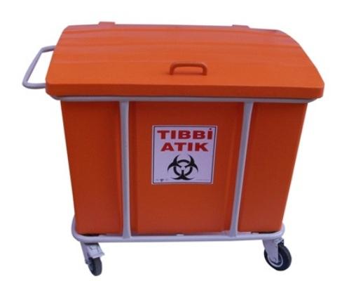 Tıbbi Atık Taşıma Arabası 270 Lt Yatık Tıbbi Atık Konteyneri 270 lt