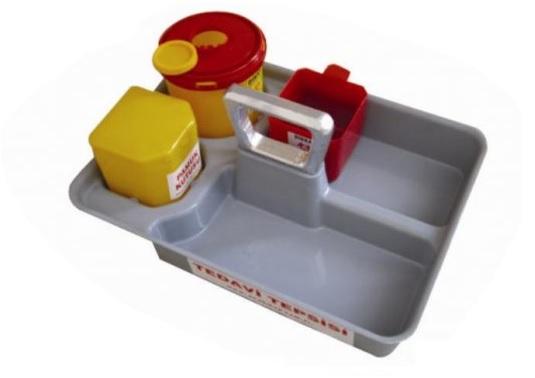 Atık ve Pamuk Kutulu Tutma Kulplu Medikal Tepsi